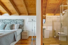 Uma das experiências mais marcantes de fotografar: esta moradia é pura alma rural. Em tempos um palheiro, hoje um refúgio encantador no meio das montanhas. A estrutura em pedra original combina com elementos clássicos e modernos, e o quarto principal... simplesmente inesquecível. A vista sobre o vale é um espetáculo silencioso que entra pela lente com naturalidade.