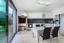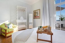 Fotografar esta moradia foi como captar o equilíbrio perfeito entre dois mundos. Com uma vista deslumbrante sobre a baía e a cidade, este espaço encanta pela luz natural que invade cada divisão. A decoração neutra e fresca transmite uma sensação de bem-estar e serenidade. É o tipo de lugar onde a cidade parece próxima, mas o sossego reina.